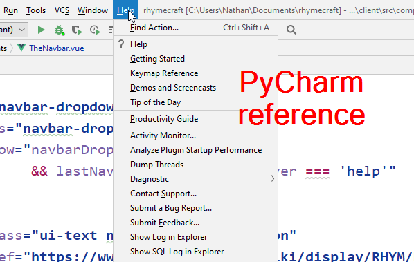 Add a 'Help' dropdown to the navbar, following PyCharm's example.