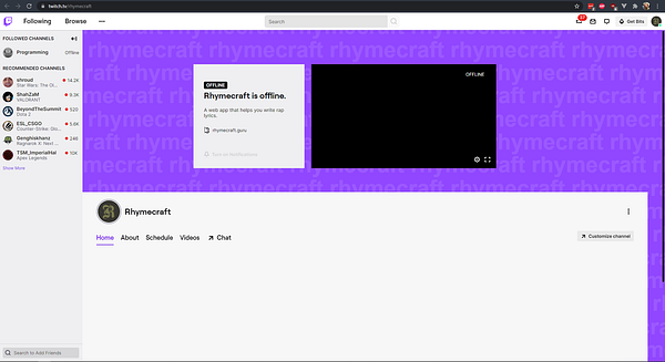 Sent an email to Maytane of the RappingManual YouTube channel to ask if I can sponsor some videos to try to get some people to keep me company on Twitch as I work on the app.