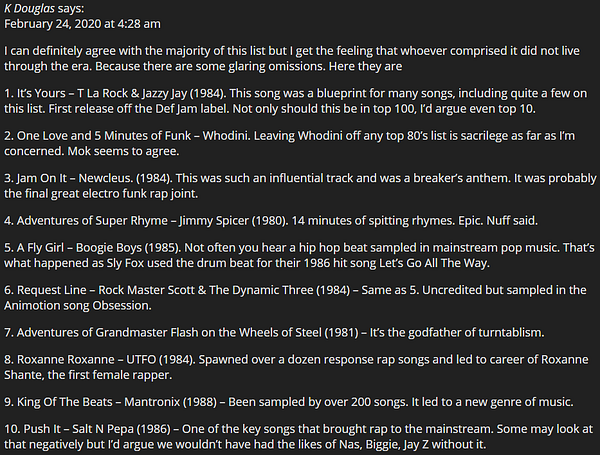 Spent some time researching the top rap songs of the '80s since the Billboard list starts in '89. I want to understand the evolution of the various techniques.