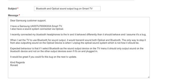 report tv bug to samsung for dad
