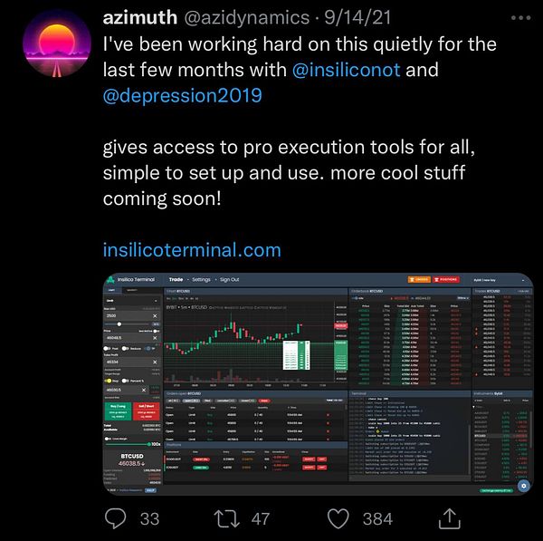 finally try new Insilico Terminal for FTX (TWAP, scaling, etc)