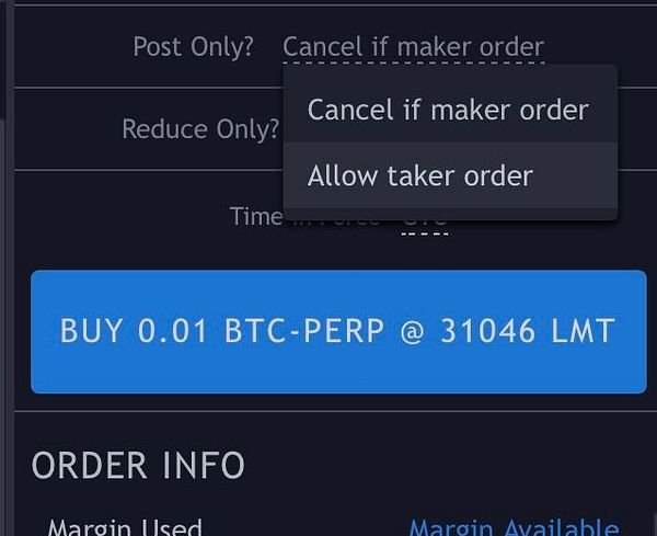 add postOnly / reduceOnly / IOC order options for FTX
