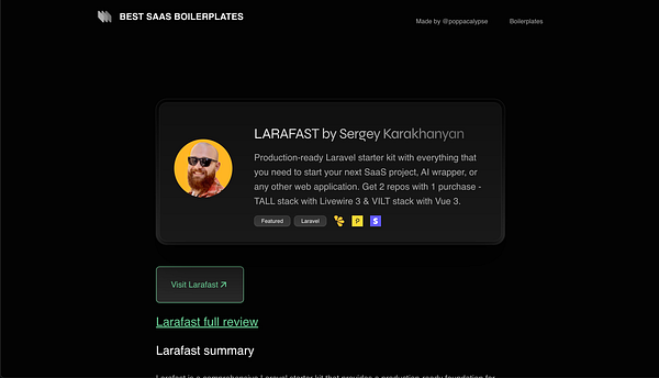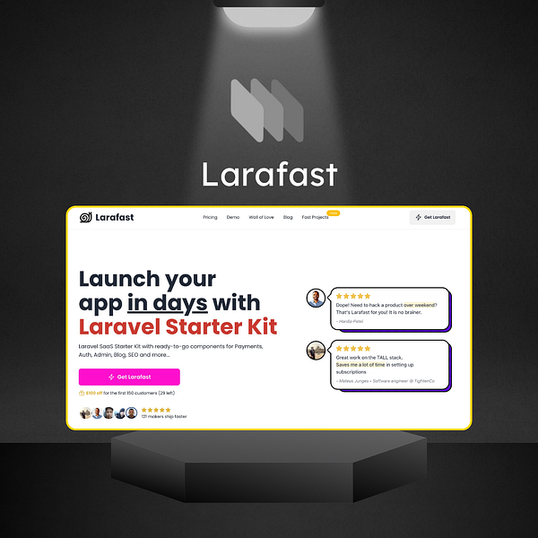LARAFAST by Sergey Karakhanyan. A production-ready Laravel starter kit that helps you build a SaaS, AI wrapper, or any other web app. You get 2 repos with 1 purchase: