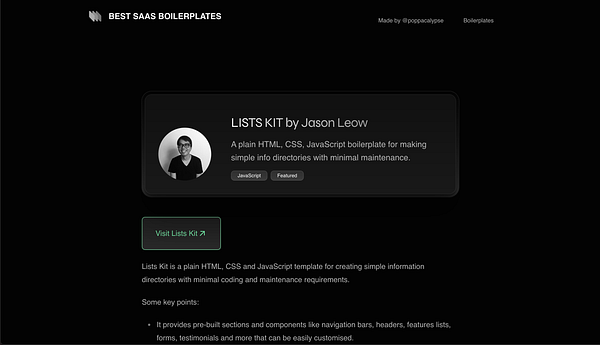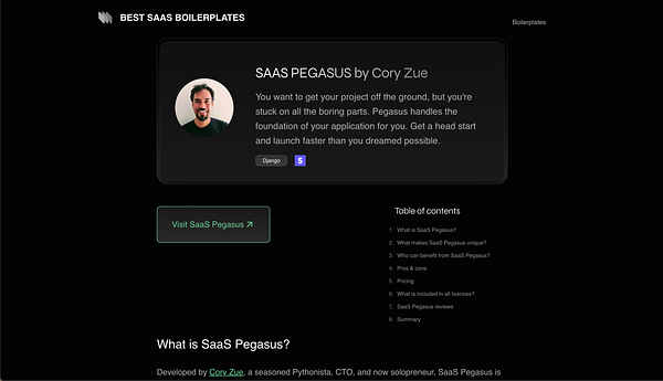 In continuance with SEO experimentation - trying out a new format for a select few boilerplates. Added table of contents and more sections like pros & cons, reviews, demo video etc.