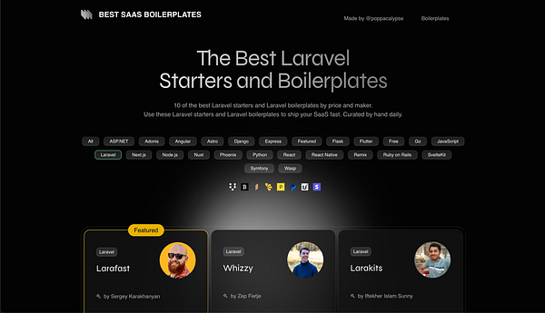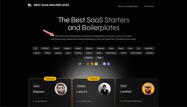 After 4 months of weekends - we have 100 of the best SaaS starters and boilerplates on the worldwide web.