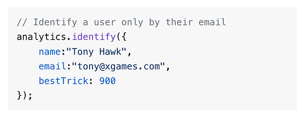 Ability to identify a user using only email. Enables signups to crm before becoming a customer