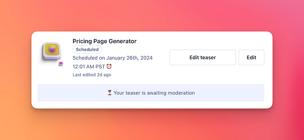 schedule launch for pricing page generator