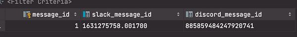 keep track of slack and discord id's for every message so if somebody replies to a certain message I can find it again in the other app
