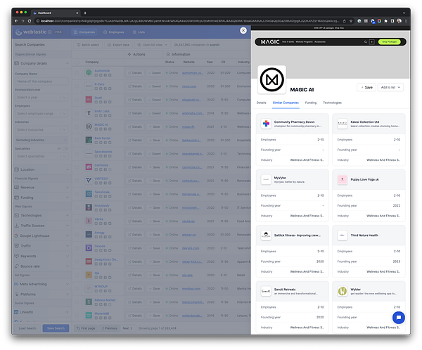 Similar companies in tab