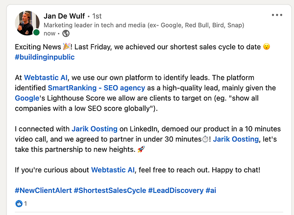 #sparkbase linkedin.com/posts/iamjandewulf_buildinginpublic-newclientalert-shortestsalescycle-activity-7071412802174763008-KhGa