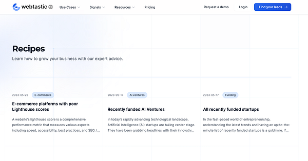 Recipes page and some recipes to find customers