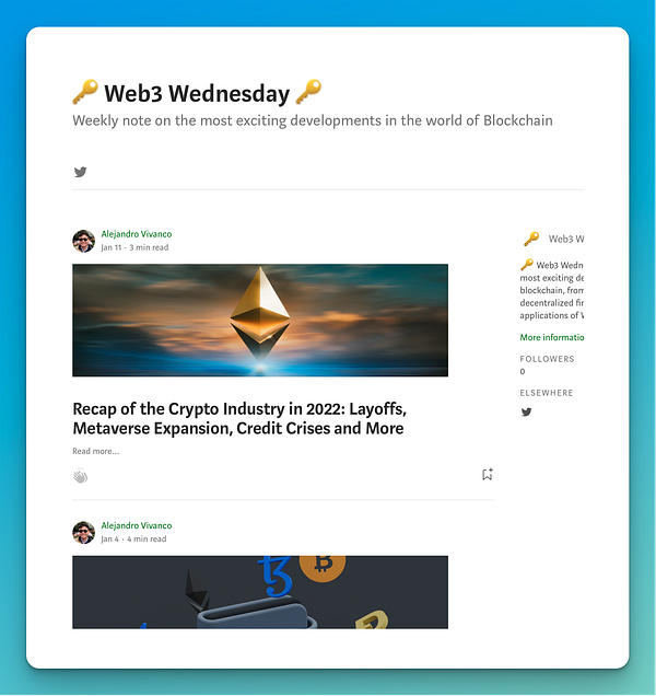 delete Web3 Wednesday dedicated publication on medium because it will create too many layers of following/subscription
