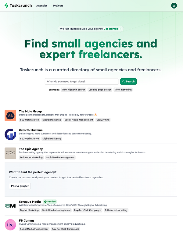 Agency/Freelancer directory