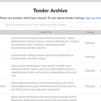 Malaysian tender and quotation sourcing platform for contractors, suppliers, manufacturers, consultants and agencies.