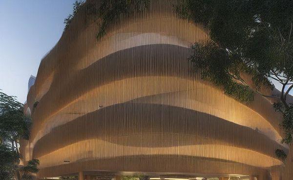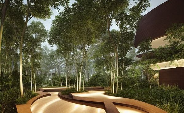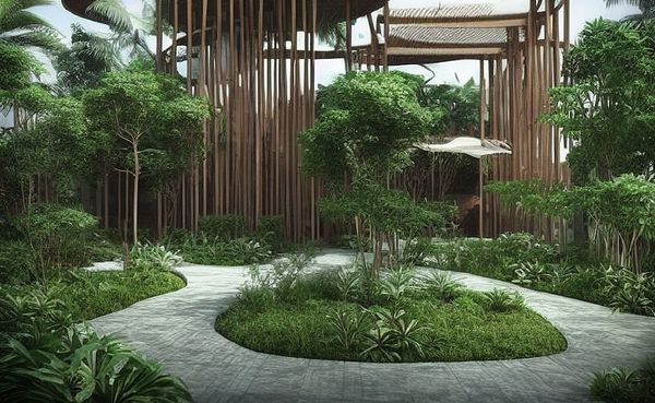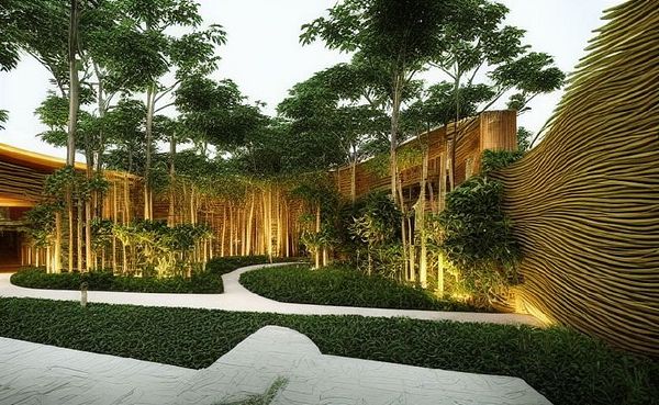 generate office buildings with bamboo and plants in Singapore