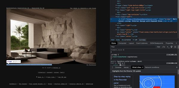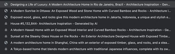 add <h1> and change titles to “Architecture Inspiration - Generated by AI” and add backlinks from my other sites
