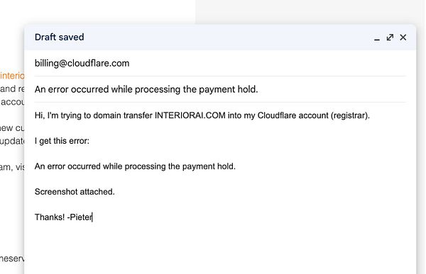 tell Cloudflare transfer doesn’t work