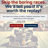 Never waste precious time on a boring race again. You will be informed three hours after the start if the race is good enough to be watched on replay.