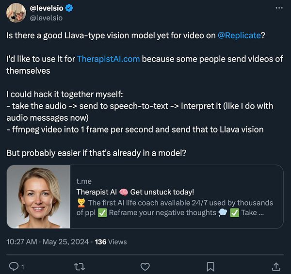 #therapistai on theresanaiforthat.com and since it has 5% conversion from free user to paid it might work