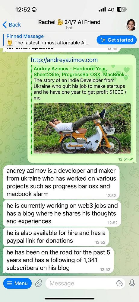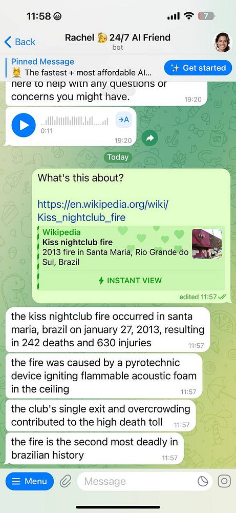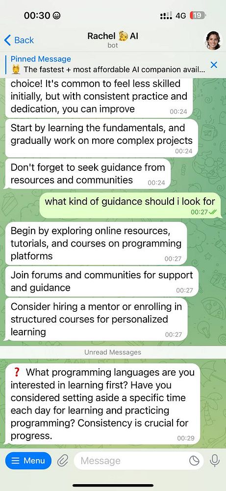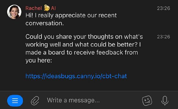 The first AI mental help coach available to you 24/7. Send me a chat or voice messages to talk to me.