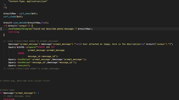 if message sent with image, save the image as prompt_image, then describe it with Llava vision model and send to Groq API