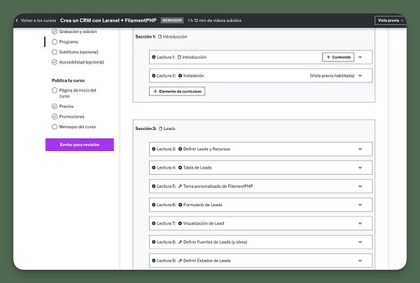 Edited the class videos for the first chapter of the "Create a CRM with Laravel + FilamentPHP" Spanish Course + Uploaded to Udemy