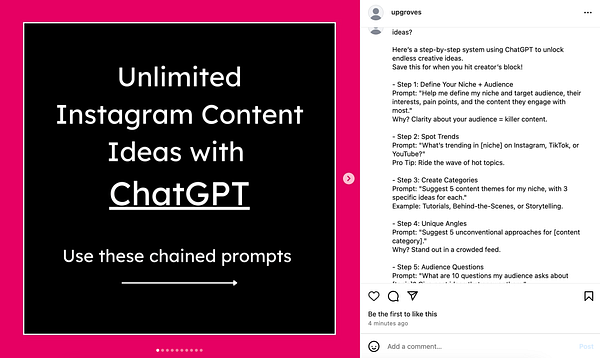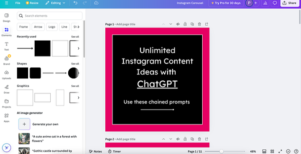 Create Instagram carousel using Perplexity & Canva on content creation with ChatGPT