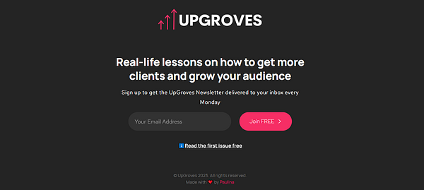 Update landing page: modify header and sub-header text. Add "Read first issue free" that leads to the first issue. I realized I can't do A/B testing with Carrd, so I'll just have to rely on plain ol' feedback.