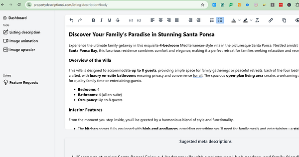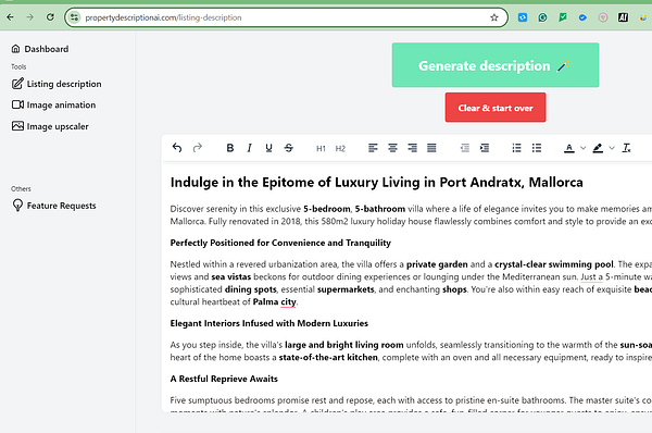 Generate villa description with my own AI tool