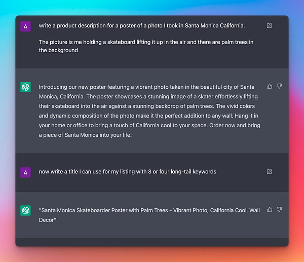 Tried ChatGPT for Photography Print listing