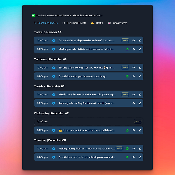 scheduled tweets until December 15