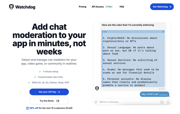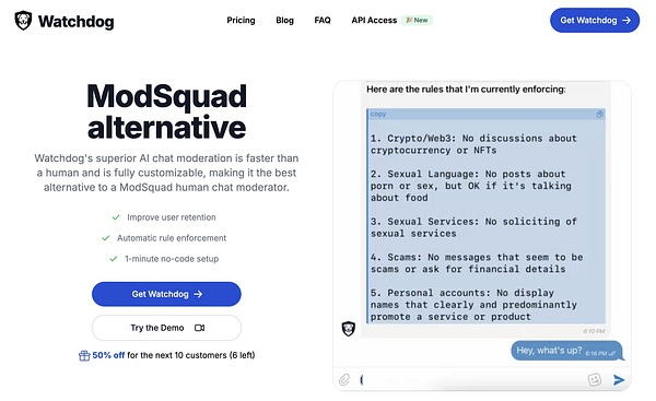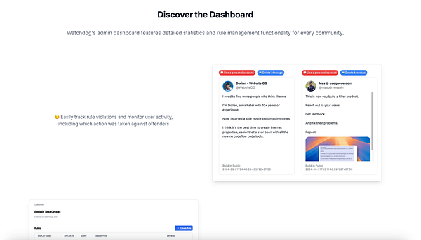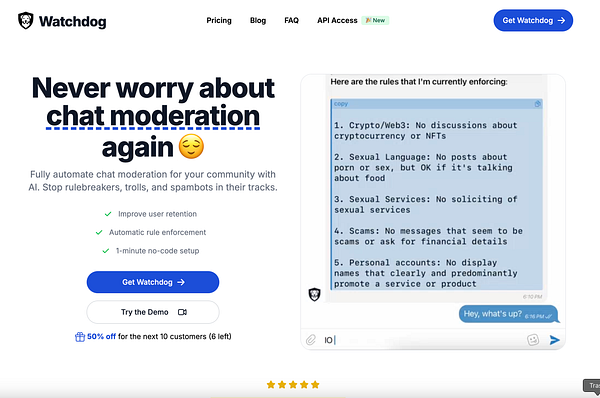 Watchdog's AI enforces your community's rules and answers your members' questions so you don't have to. Supports Crisp, Telegram, Discord, Reddit, and X communities.