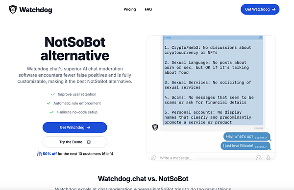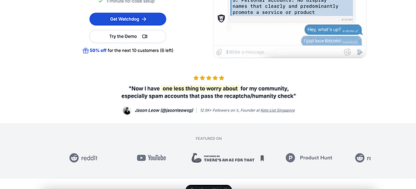 Watchdog's AI enforces your community's rules and answers your members' questions so you don't have to. Supports Crisp, Telegram, Discord, Reddit, and X communities.