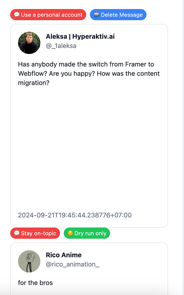 Ship huge update to Watchdog including community/rule management tooling for all customers and post about it. Required a rework of the bot and the API layer as a config file was used before, and now everything is in the DB (made about 5 different tables, wrote 10ish queries for different use cases, updated all codepaths, and re-tested everything - now it's time to sleep 😅): x.com/ben_makes_stuff/status/… and www.linkedin.com/feed/update/…