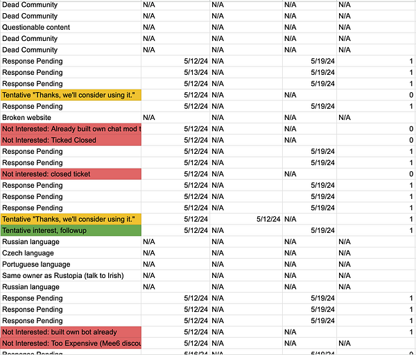 Cold message 25 more leads manually: this time for Discord server admins to gauge interest. So far got 3 interested responses immediately which is a good sign. Can probably just keep selling this to game server owners as they experience a lot of spam/scams, good market for this I think 💡