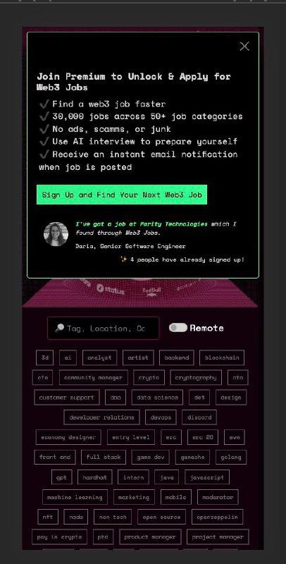 add social proof to banner with photo of a person who found a job via web3 jobs