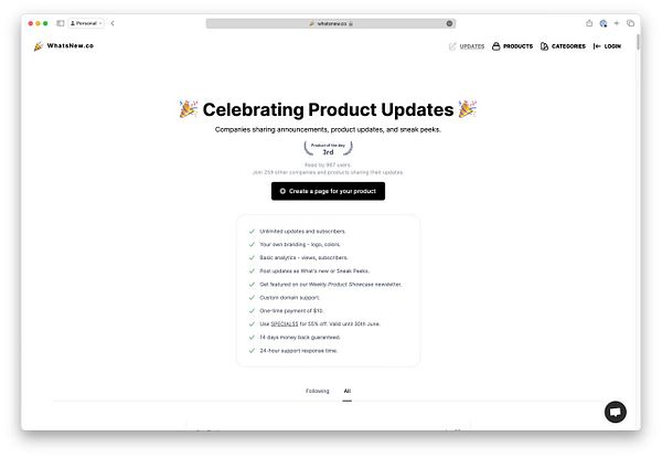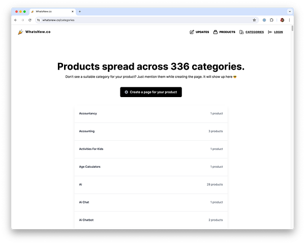 Simplified homepage to show just the product updates and move explore and categories to footer