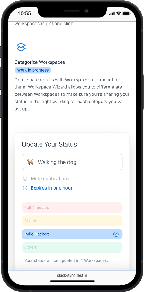 mobile: adjusted landing page status update example section according to the new status update dialog
