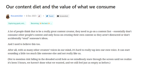 Creating a consistent writing habit separate from my brand