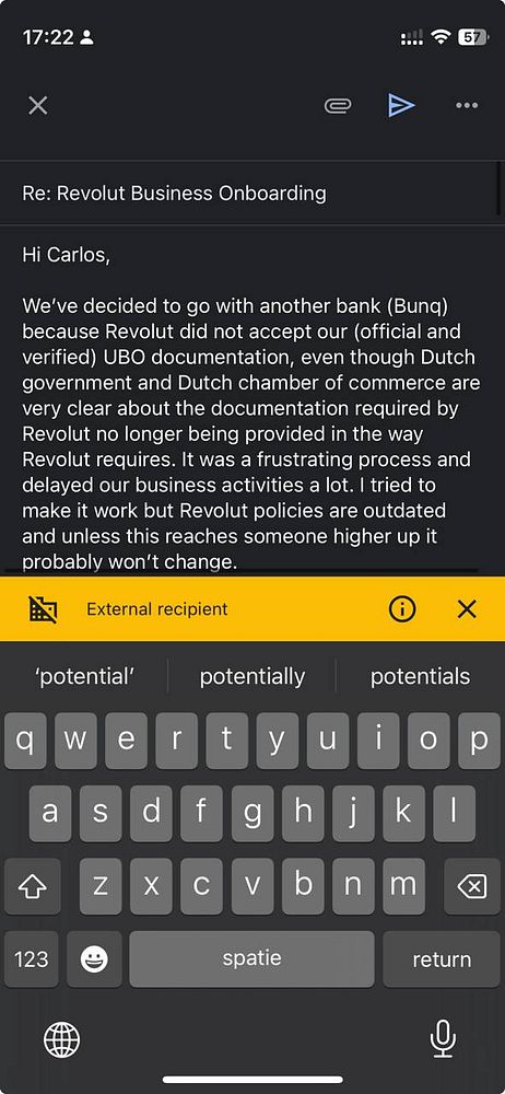 Respond to spammy Revolut account manager and explain their policies are >2 years behind