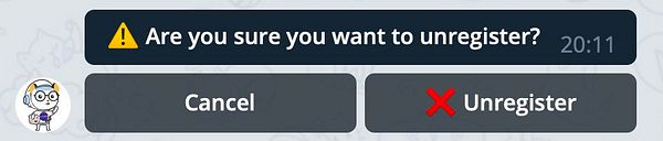 add unregister warning (positions won't be closed etc) #kornwolf