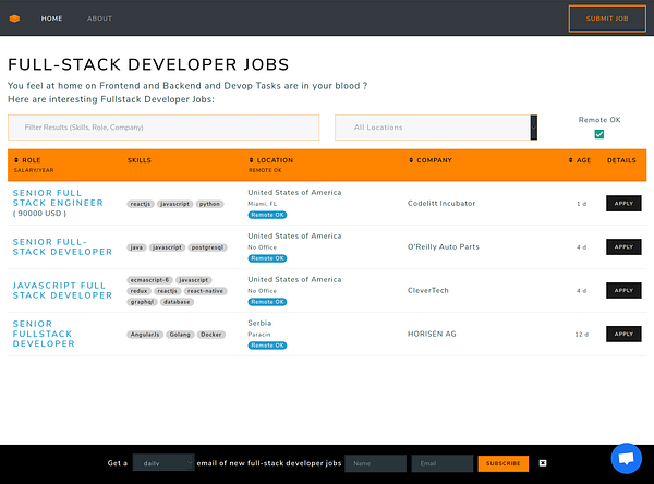 Filter for Remote OK only fullstackjob.com #fullstackjob Should I move status here on wip.chat to launched yet?