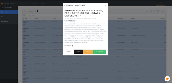 Working Blog Post Admin (tired of doing posts with Postman :-)) for fullstackjob.com #fullstackjob