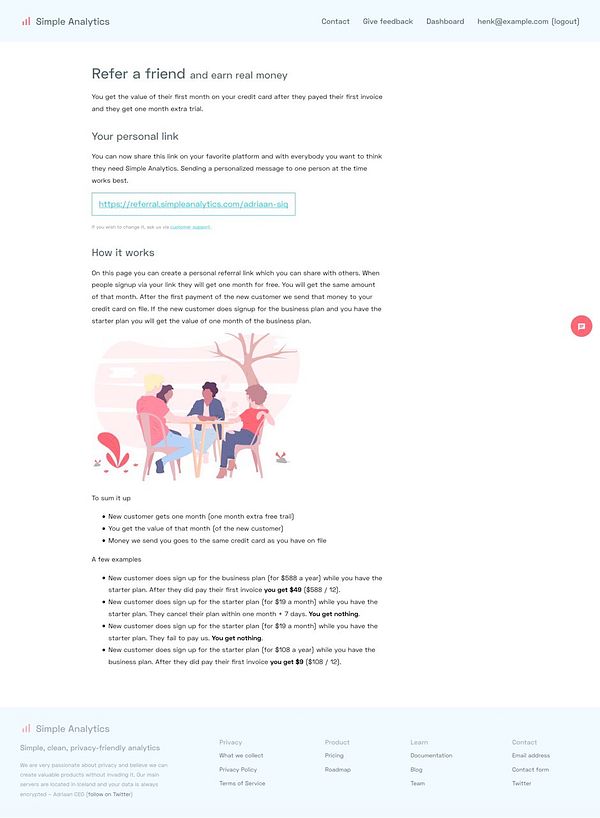 Create page for customers to generate a referral link #simpleanalytics