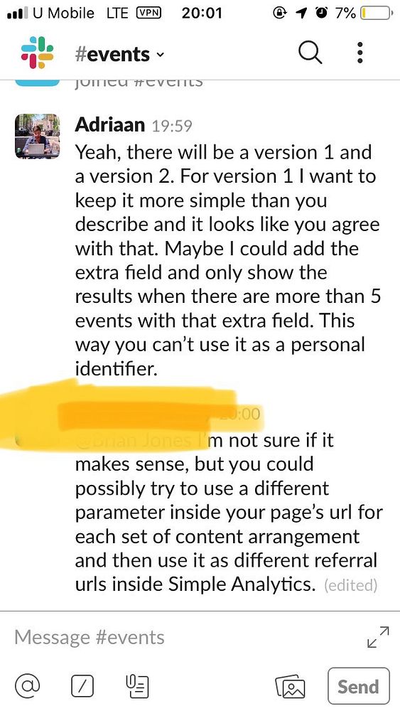 Setup Slack group to talk with customers that want to use Events #simpleanalytics