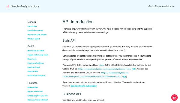 Add #docs about API with JSON format (docs.simpleanalytics.com/api) #simpleanalytics