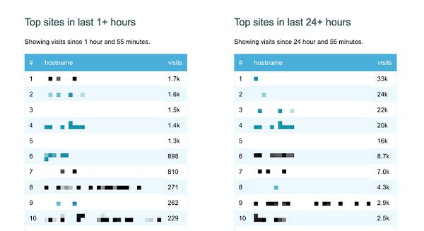 Show top websites is last 1 hour and 24 hours to see unexpected new big customers #simpleanalytics