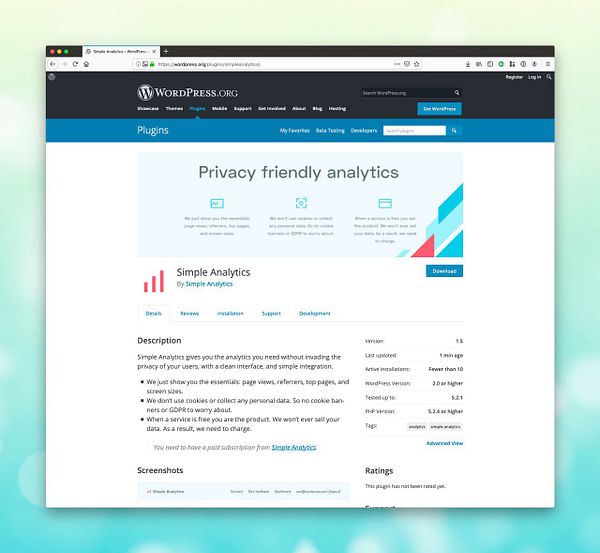Publish WordPress plugin as Simple Analytics #simpleanalytics