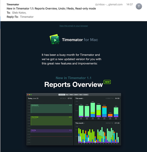 Create and send update newsletter #timemator