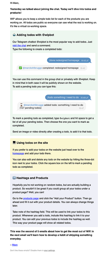 write onboarding email day 2 – ✅ Todos and products #wip